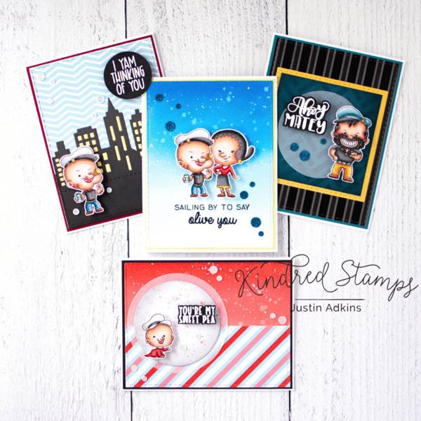 Let's set sail for another amazing Kindred Stamps release! I have a set of 4 projects to share featuring the new Ahoy Matey stamp set, and I think you're going to love this new collection more than spinach!